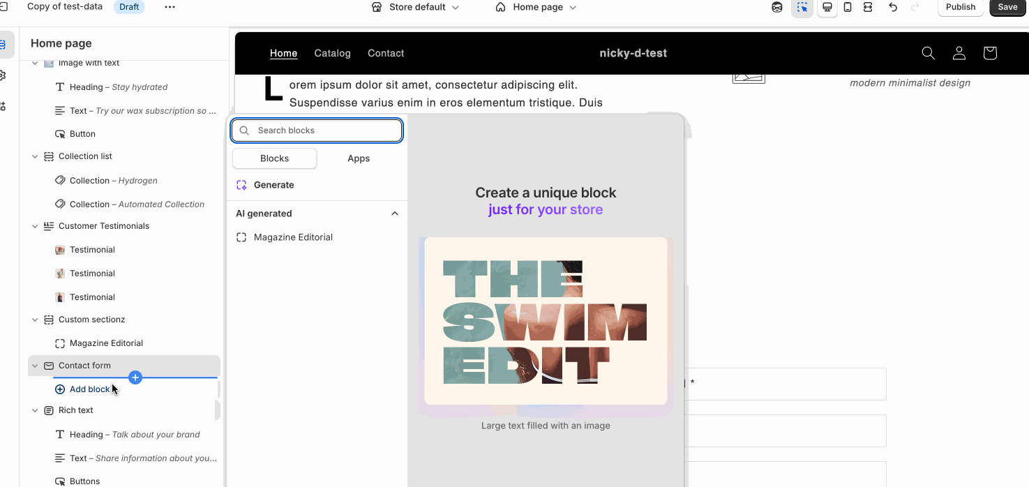 AI - Powered Theme Block Customizer WITHIN Shopify