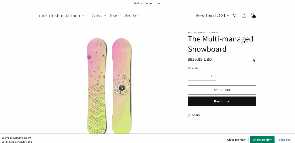*Note you will need to enable the cart drawer setting in the theme customizer.