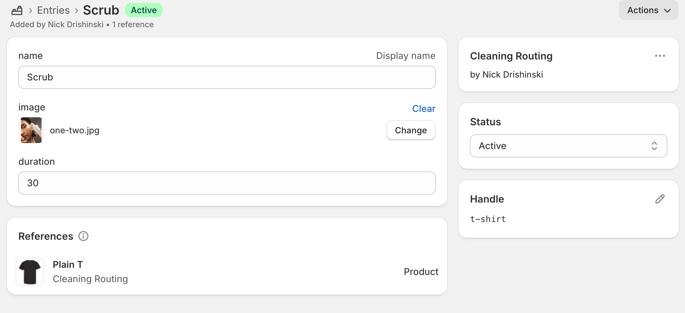 - `cleaning_routing` is the metaobject definition name